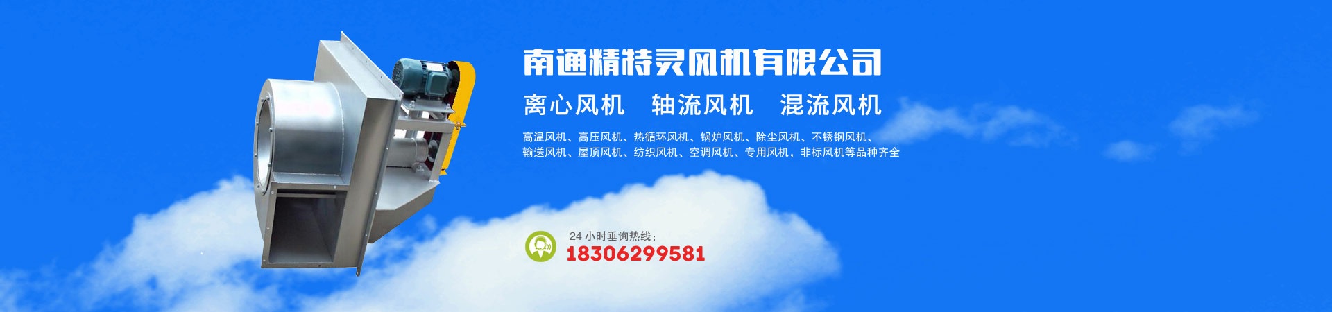 南通飛躍特種風機制造有限公司,南通英玥機械有限公司,成立于1987年,專業生產各種規格的離心風機、軸流風機、斜流風機、混流風機、高溫防爆風機、空調專用風機、涂裝專用風機及涂裝非標熱循環風機等。